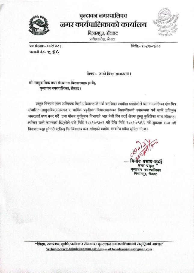 जाडो विदा सम्बन्धमा ।