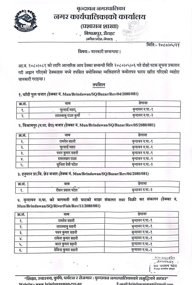 आ.व. २०८०।०८१ को लागि आन्तरिक आय ठेक्काको कबोलपत्र फारम खरिद सम्बन्धी सूचना ।