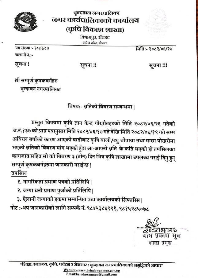 बृन्दावन नगरपालिकाको आ.व. २०८१।०८२ को खर्च फाटवारी