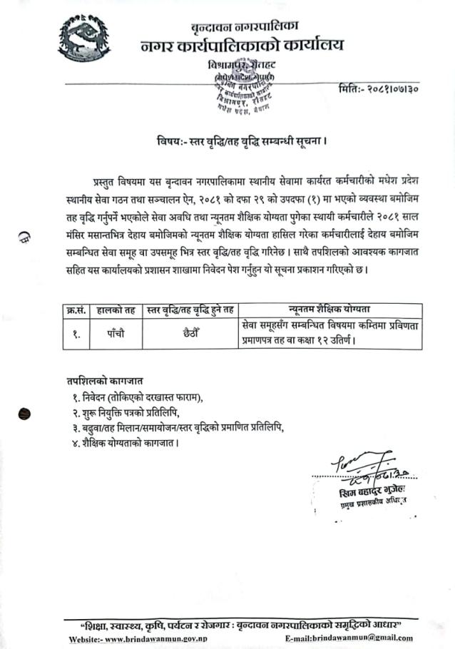बृन्दावन नगरपालिका कर्मचारी तह/स्तर वृद्धि सम्बन्धी कार्यविधि, २०८१