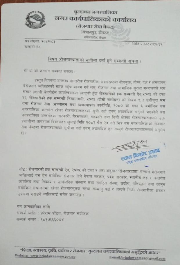 रोजगारदाताको सूचीमा दर्ता हुने सम्बन्धी सूचना !